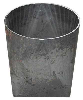 Konzentrisches Übergangsstück von rund Ø 216 mm auf rechteckig 173 mm x 176 mm, Bauhöhe 222 mm. Bestehend aus zwei aneinander gehefteten Hälften aus 3 mm P265GH Kesselblech, mit 30 Intervallkantungen je Halbkreis.
