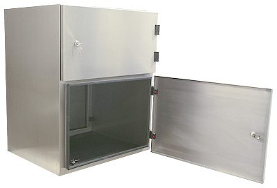 Edelstahlgehäuse für den Einsatz als Nachtschalter in Banken, von der Rückseite vom Bankpersonal zu öffnen.