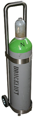 Flaschenwagen für den mobilen Einsatz von Gasflaschen. Hier speziell für eine Druckluftflasche für den Boxenstop im Rennsport.
