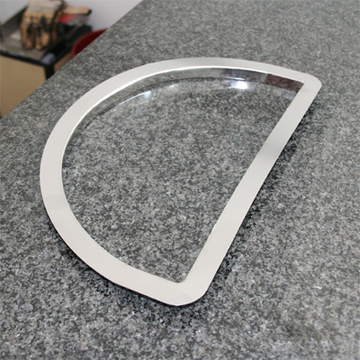für Mülleimeröffnungen. Hergestellt aus 3D Edelstahlblech, Materialstärke 1 mm, entlang der gesamten Innenkante verschweißt und nachträglich elektro-poliert.